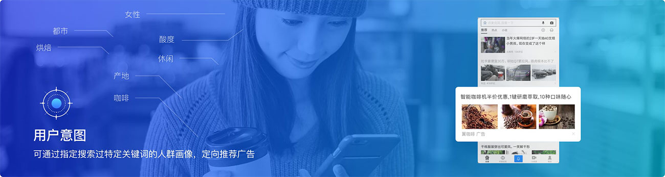 基于消費(fèi)者的搜索習(xí)慣,人群畫像、定位等信息,不同的用戶畫像,系統(tǒng)將自動(dòng)匹配不同廣告內(nèi)容,千人千面,更加契合用戶的搜索需求