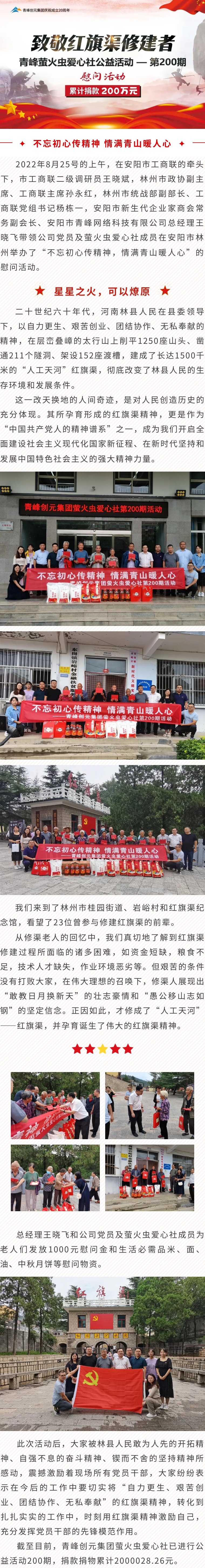 致敬紅旗渠修建者-青峰創元集團螢火蟲愛心活動第200期(累計捐款200萬元)